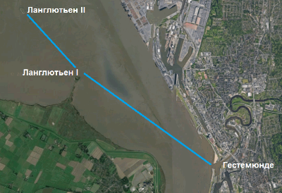 После постройки форта Ланглютьен левом берегу в устье Везера, крепости Гестемюнде, расположенной на правом берегу, потребовалось служебное судно для связи с фортом. Для этих целей на кильской верфи "Norddeutsche Schiffbau-AG" был заказан пароход по типу грузо-пассажирского парома, названный в честь форта "Langlütjen". Корабль, способный принять 207 т. груза, был готов по окончании войны с Францией и с августа 1871 приступил к службе, осуществляя снабжение форта (а с 1872 - двух фортов). Он возил продукты, материалы и людей до 1907 года, когда был списан.