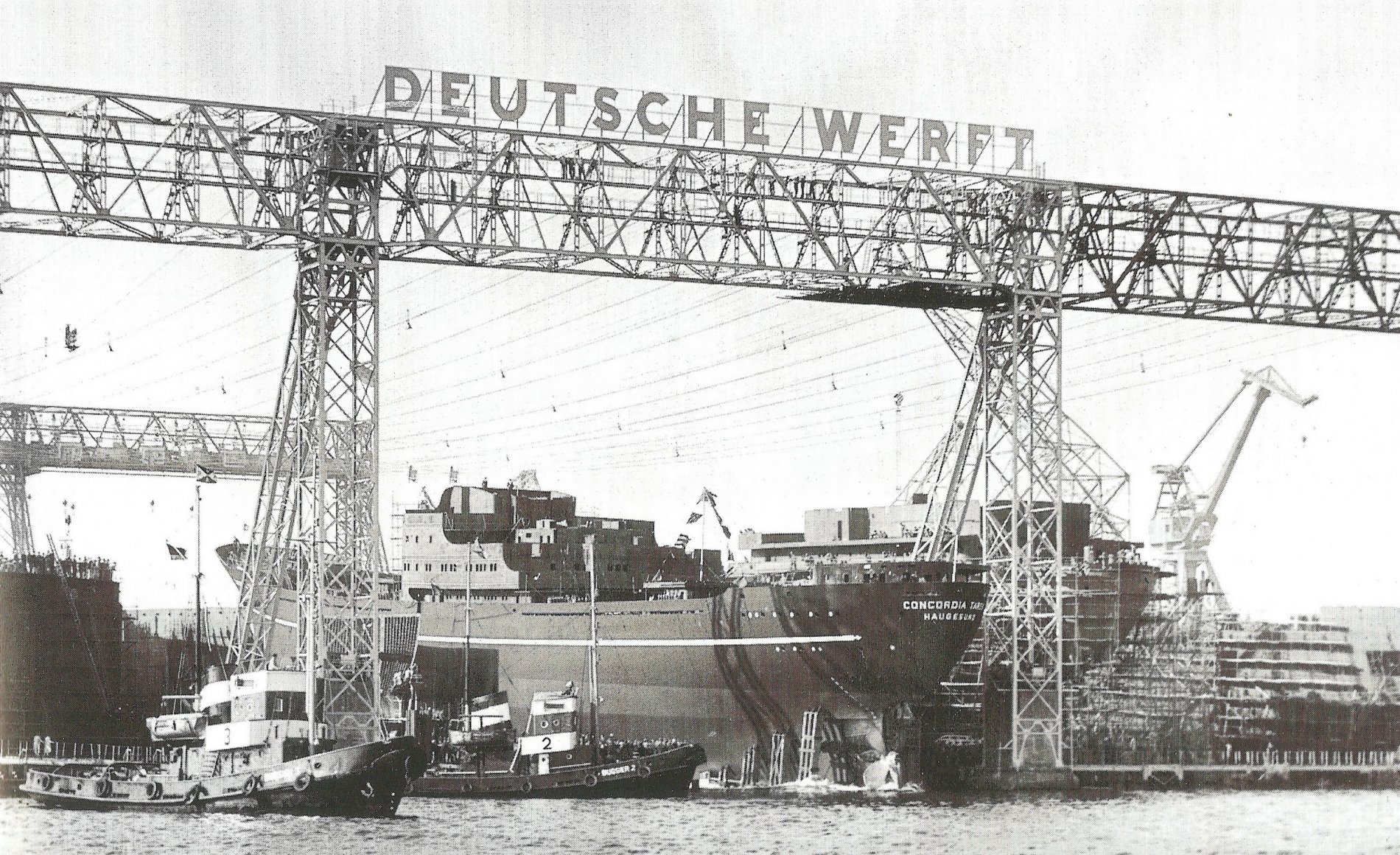 Первые послевоенные годы характеризовались небольшими заказами в рамках Потсдамского соглашения (оно ограничивало судостроение водоизмещением до 1500 брт, дальность не более 2000 морских миль и скорость до 12 узлов). Выполнялся ремонт трамваев и железнодорожных цистерн. Только в 1949 году можно было снова рассматривать реальное судостроение. Хотя неограниченного строительства все еще не существовало, и корабли не разрешалось отправлять за границу, правила были смягчены. Окончательное снятие ограничений произошло только в мае 1952 года. В то время корейский конфликт спровоцировал бум судоходства, который избавил верфь от заботы о контрактах на долгие годы. Тем более, что Суэцкий кризис 1956 года принес новый экономический подъем.